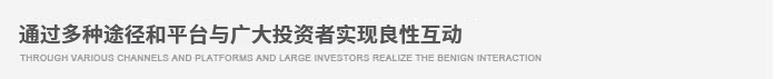 公司證券部作為投資者關(guān)系管理的具體實(shí)施機(jī)構(gòu),是公司與投資者溝通的橋梁。公司通過(guò)多種途徑和平臺(tái)與廣大投資者實(shí)現(xiàn)良性互動(dòng),致力于廣大投資者服務(wù)。如果您想了解投資者關(guān)系方面的問(wèn)題,歡迎來(lái)電、來(lái)郵咨詢。